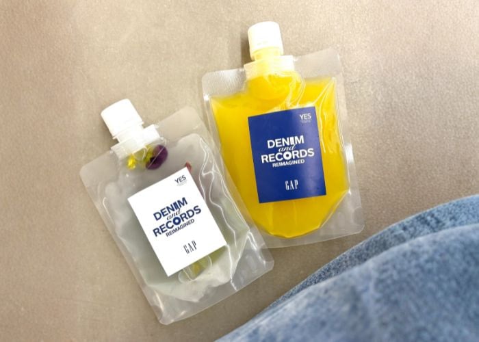 デニムとマッチする黄色いジュースと、ほんのり水色のデトックスウォーターを作成いたしました。