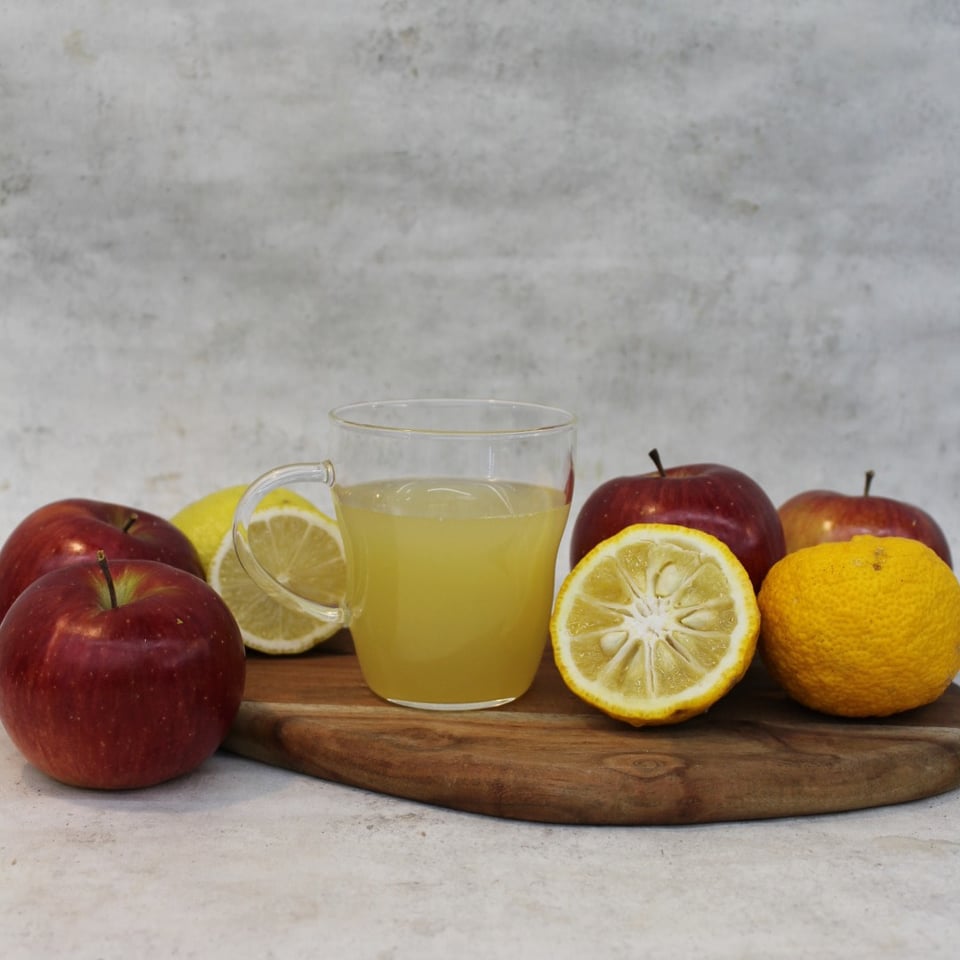 旬のリンゴ、柚子の上品でスッキリとした味わいのジュースに甘酒を加えたHOTのジュースです。