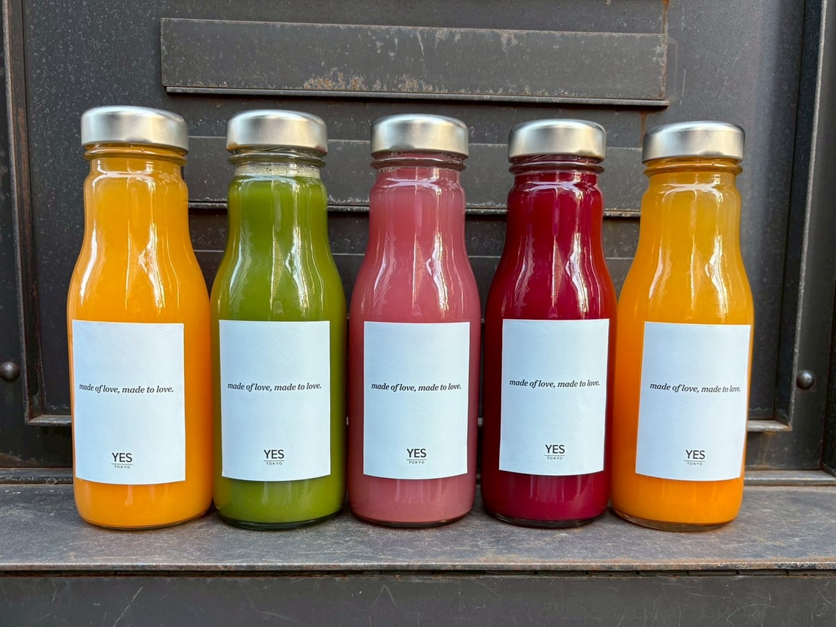 今回は、季節のジュースを含む5種類のコールドプレスジュースをオリジナルラベルでご用意しました。