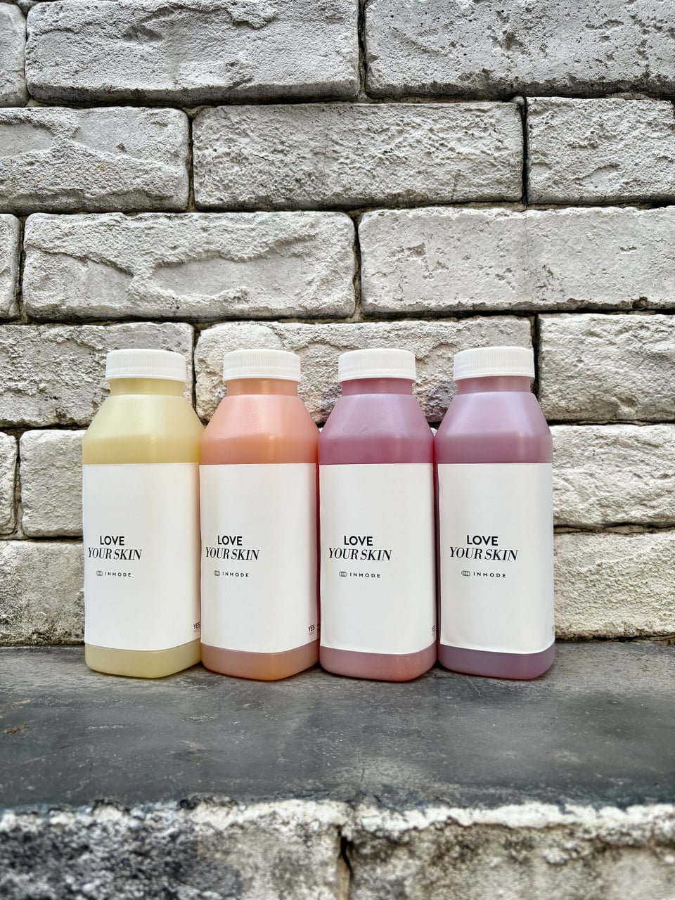効能、味、色味の違う4種類の色鮮やかなジュースのご注文いただきました。